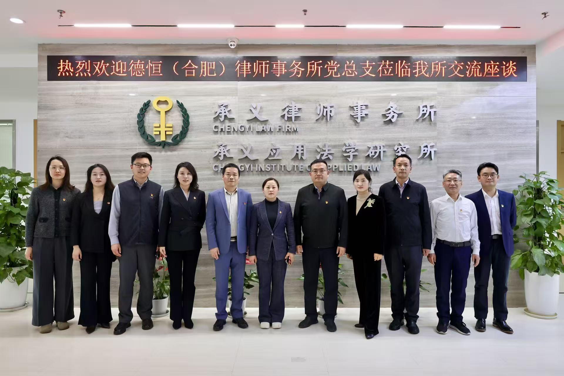 为进一步加强律师行业基层党组织建设,深化党建与业务融合发展,2026年3月27日下午,北京德恒(合肥)律师事务所党总支一行前往安徽承义律师事务所开展党建与业务交流活动。党总支书记张本意、党总支副书记吴丹、党总支纪检委员兼妇联主席付晓艳、党总支宣传委员兼第一支部书记田多雨、党总支组织委员兼行政主管荣庆文及党务专员汪若缘参加了本次活动。